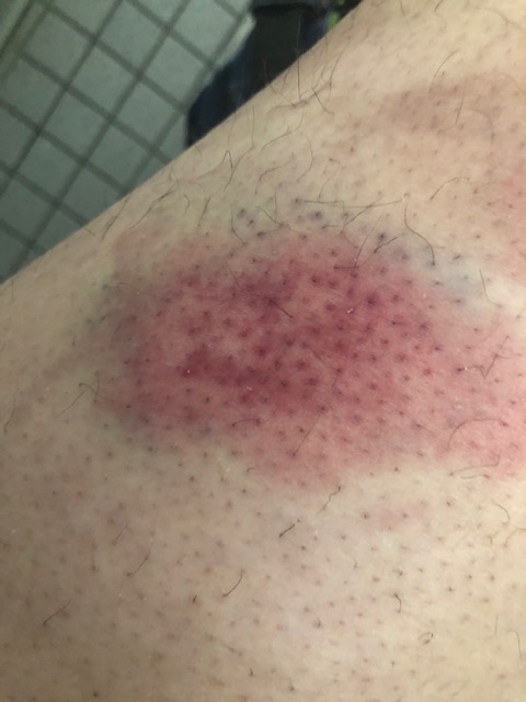 Pretty good week all in all. Tuesday I went in and got my shot. Pretty sure the nurse hit the muscle (yeah I still have a couple smart ass). Damn shot burned like hell going in and I got what looks like a paint ball welt where she got me. I don’t think we ever talked about the shot. Every week even on my “week off” I get a shot of Valcade, it’s the main reason other then blood work I have to go to treatments. When they get the go ahead to hit me with the juice, the nurse gets suited up in a plastic over smock and double gloves. At first I thought she was afraid that the needle will hit a vein and start spurting my baby killing blood all over her. Last week I asked and you will be relieved to know I was wrong. They aren’t afraid of baby killing blood splatter, the shot is so hazardous that they are not allowed to handle it at all without a mini bio suit just in case it leaks and drips a couple drops on their exposed skin. Yeah this is the stuff they inject me with every week. Feeling real good about this.